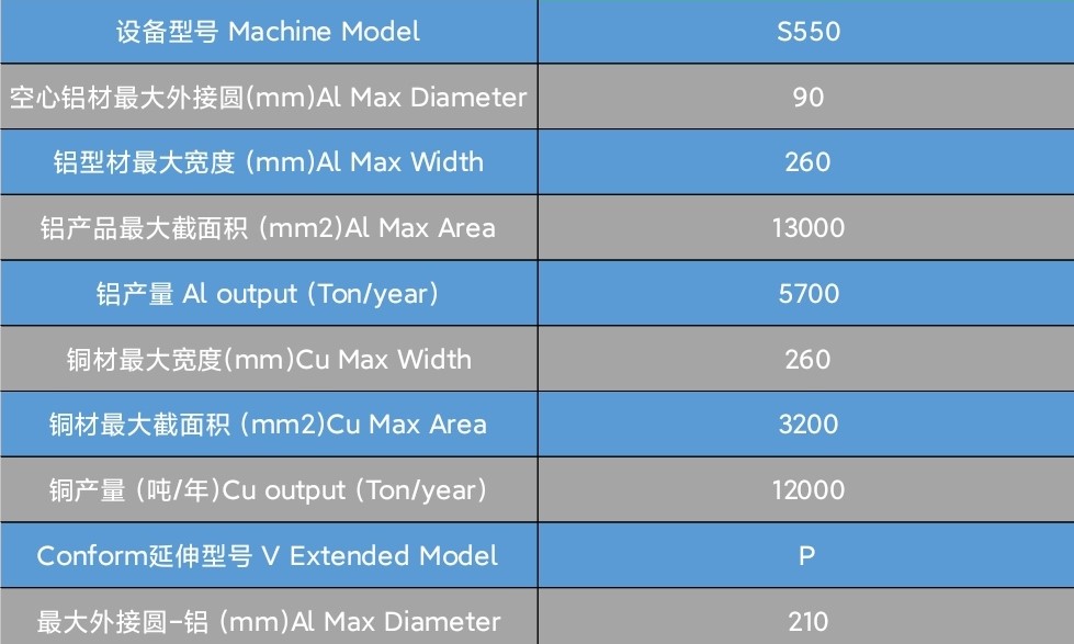 Conform 機型用于生產大尺寸的鋁材,銅母線和銅的型材,Conklad用于大尺寸的鋁包覆和護層,一般的機型結構都適用于ConformConklad的操作。